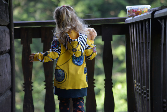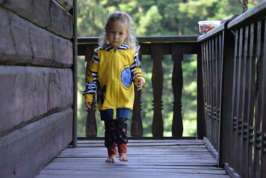 Holčička na fotu má cca90cm a je útlá - velikost oblečenou má 92/104 - je ji tedy opravdu ještě veliká - tedy nemějte strach, že mikinka bude veliká - vybírejte dle velikostní tabulky - jako rostoucí mikinka se dá nosit i déle....